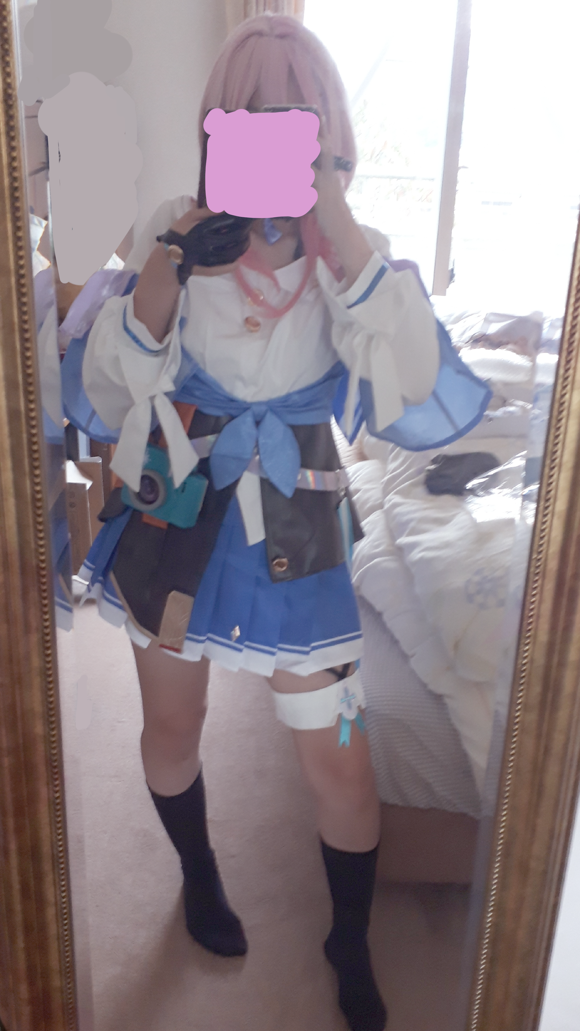 水色もピンクもかわいい色味で気に入っています。スカートの丈感もちょうどよかったです。カメラの作りもしっかりしていました。