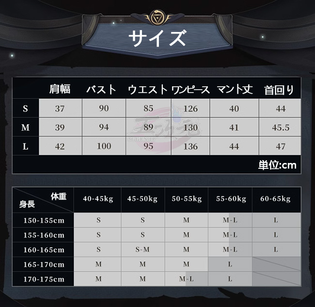 ①衣装は規定サイズ・規定数量でまとめて生産されていますので、サイズオーダー及びセット内容の一部を別サイズに変更する事は不可です。