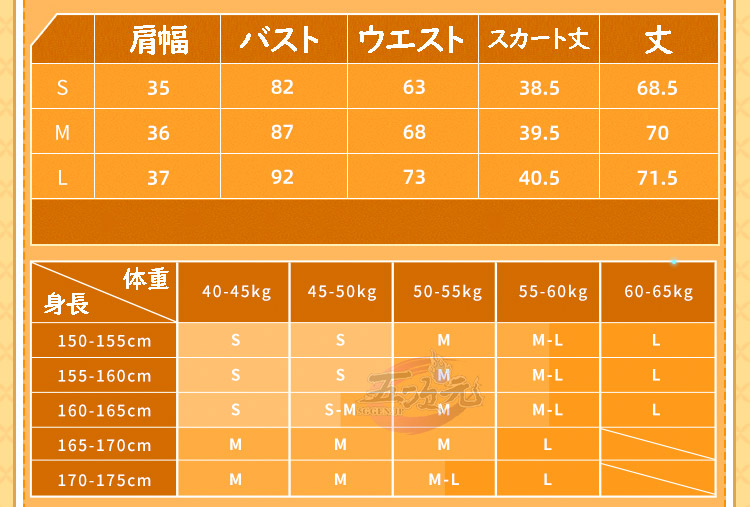 ①衣装は規定サイズ・規定数量でまとめて生産されていますので、サイズオーダー及びセット内容の一部を別サイズに変更する事は不可です。
